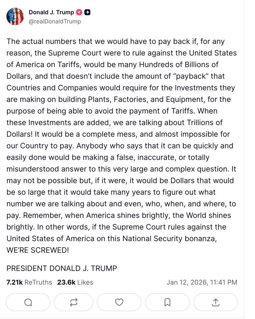 Yet, Trump wants us to believe that refunds would be “almost impossible for our Country to pay.”
